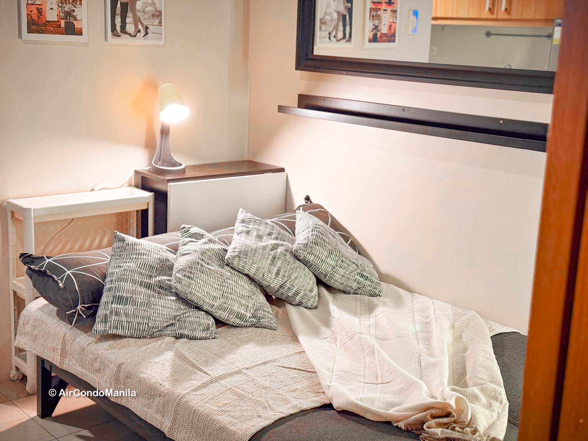 Centrally located in Pasay City Mall of Asia - 10 mins walk🚶 NAIA (Airport) - 15 mins car without traffic🚖 SMX and MOA Arena - 15 mins walk🚶 PICC - 5 mins car without traffic🚖 Okada, City of Dreams, Ayala Mall by the Bay - 5 mins car without traffic🚖 🏠The space: - 1 Bedroom with 1 bed (sleeps 2) - 1 Sofa Bed (sleeps 2) - 1 Bathroom with hot and cold shower - Free Wi-Fi access - Smart TV with Netflix and YouTube - Water heater - 1.5HP Split Type Air-conditioning
