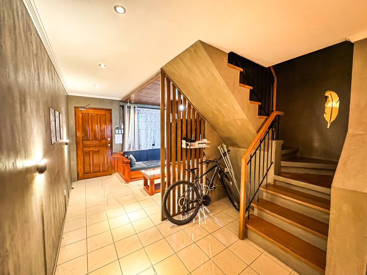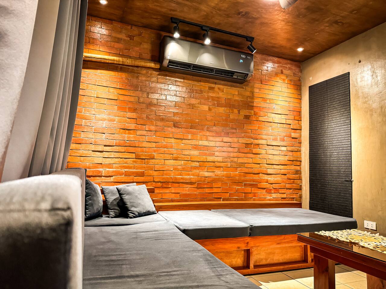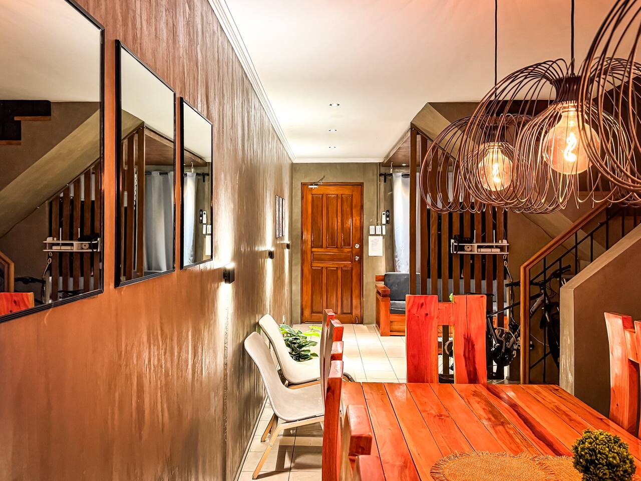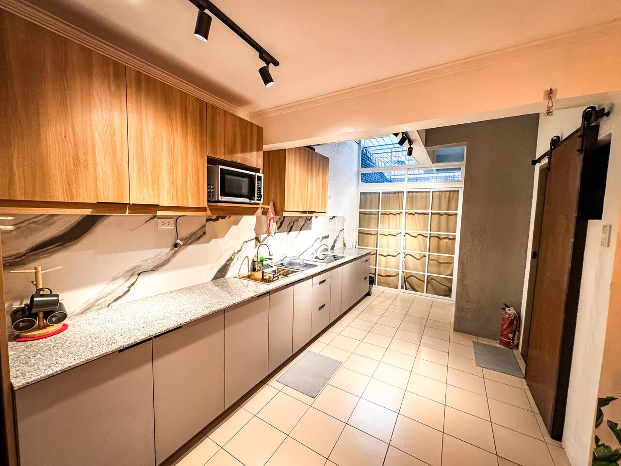 A charming townhouse that perfectly marries comfort and convenience. This stylish haven, nestled within a gated community, spans 140 sqm and includes a spacious 106 sqm lot area, providing ample room for relaxation and gatherings. As you step inside, you'll be greeted by a captivating Korean industrial-inspired interior that exudes a modern yet cozy ambiance. The generous living space invites you to unwind on the oversized sofa, while the contemporary kitchen is adequately equipped for your culinary adventures. With four snug bedrooms, you can choose from a variety of sleeping arrangements to suit your needs. The master’s bedroom features a queen-size bed, accommodating two guests, and is complemented by a double mattress in an adjacent room for additional comfort. Room 2 boasts a bunk bed with a pull-out, perfect for kids or friends, accommodating up to three guests. Room 3 includes a single bed with a pull-out bed, making it ideal for larger families or groups. The fourth room on the first floor provides a single bed for additional guests. With its calming atmosphere and peaceful neighborhood, this townhouse is the perfect place for families and friends to create lasting memories. Experience a delightful stay where every detail is designed for your comfort and relaxation here in the tropical country Philippines.